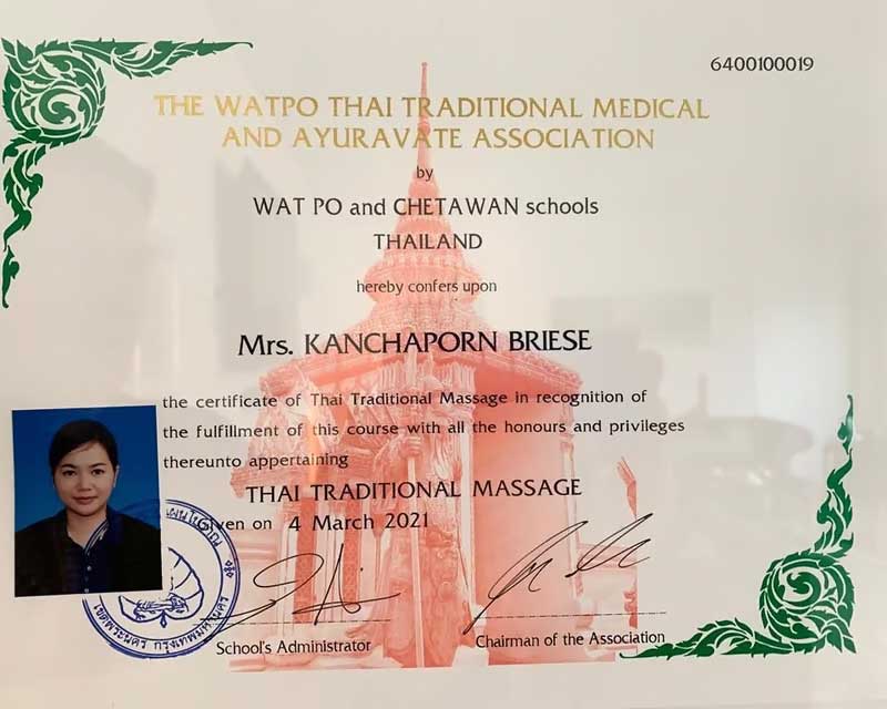 Mein Name ist Kanchaporn und ich komme aus dem hohen Norden Thailands. Aus dieser Region stammt der Ursprung der traditionellen Thai Massage und die besondere Art dieser Massage wurde mir von kleinauf in die Wiege gelegt.
